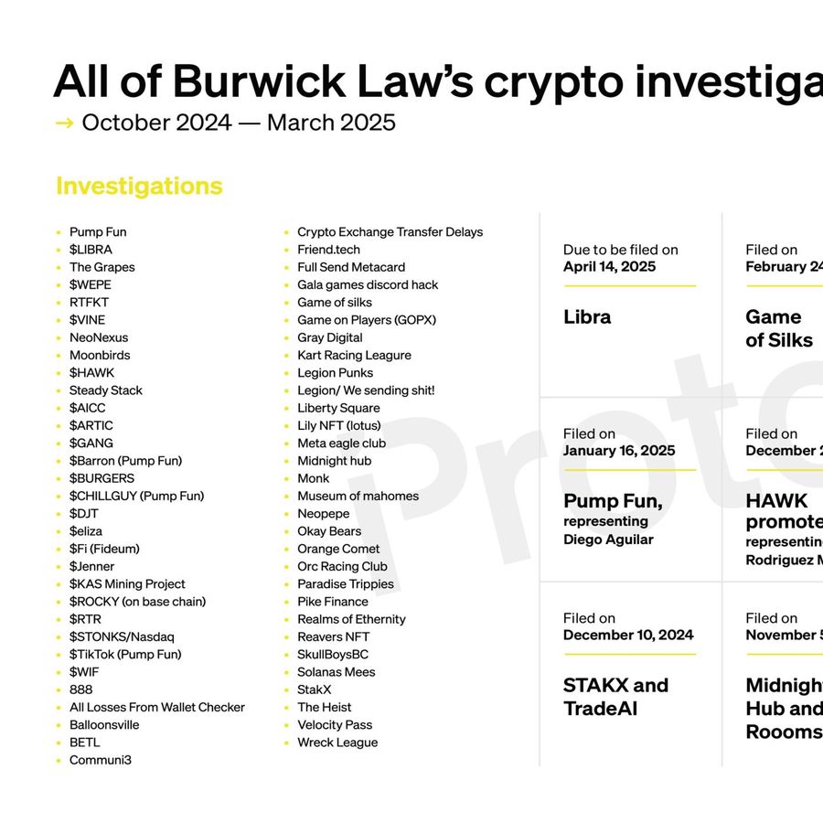 Of its 60+ investigations, at least 11 have become individual and class action lawsuits, including those against Libra, Pump Fun, and STAKX.