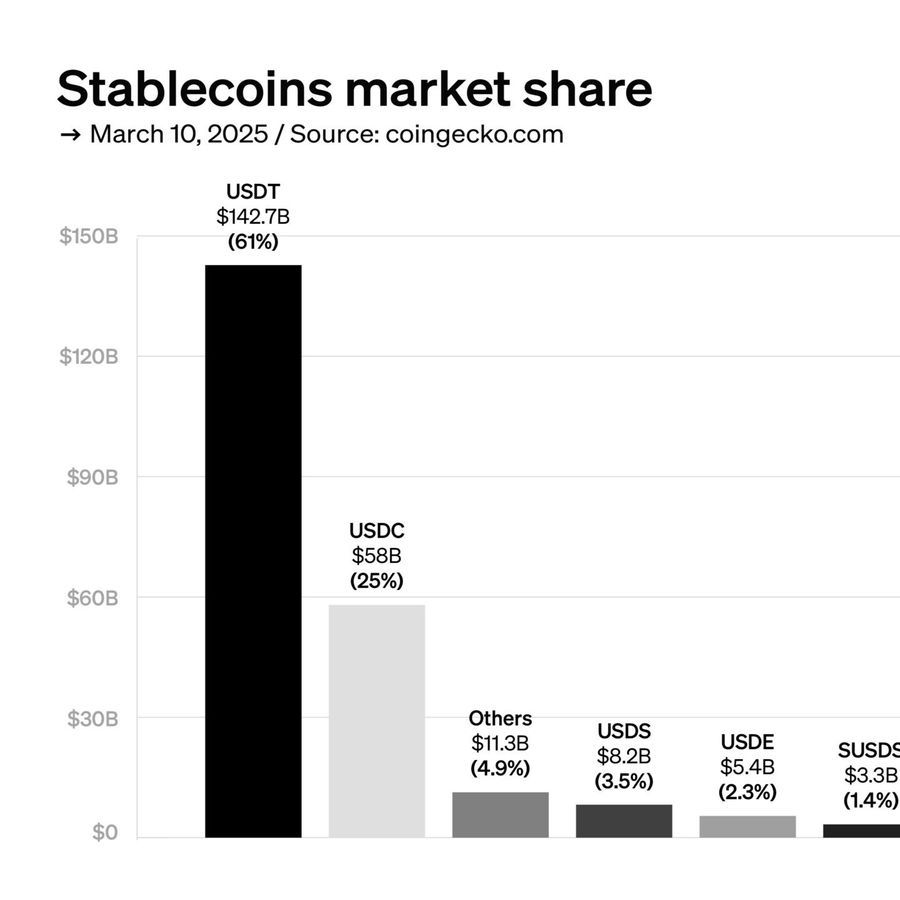 Despite excellent political and banking conditions for stablecoins, PayPal’s PYUSD and Ripple’s RLUSD are still less than 1% of the market.