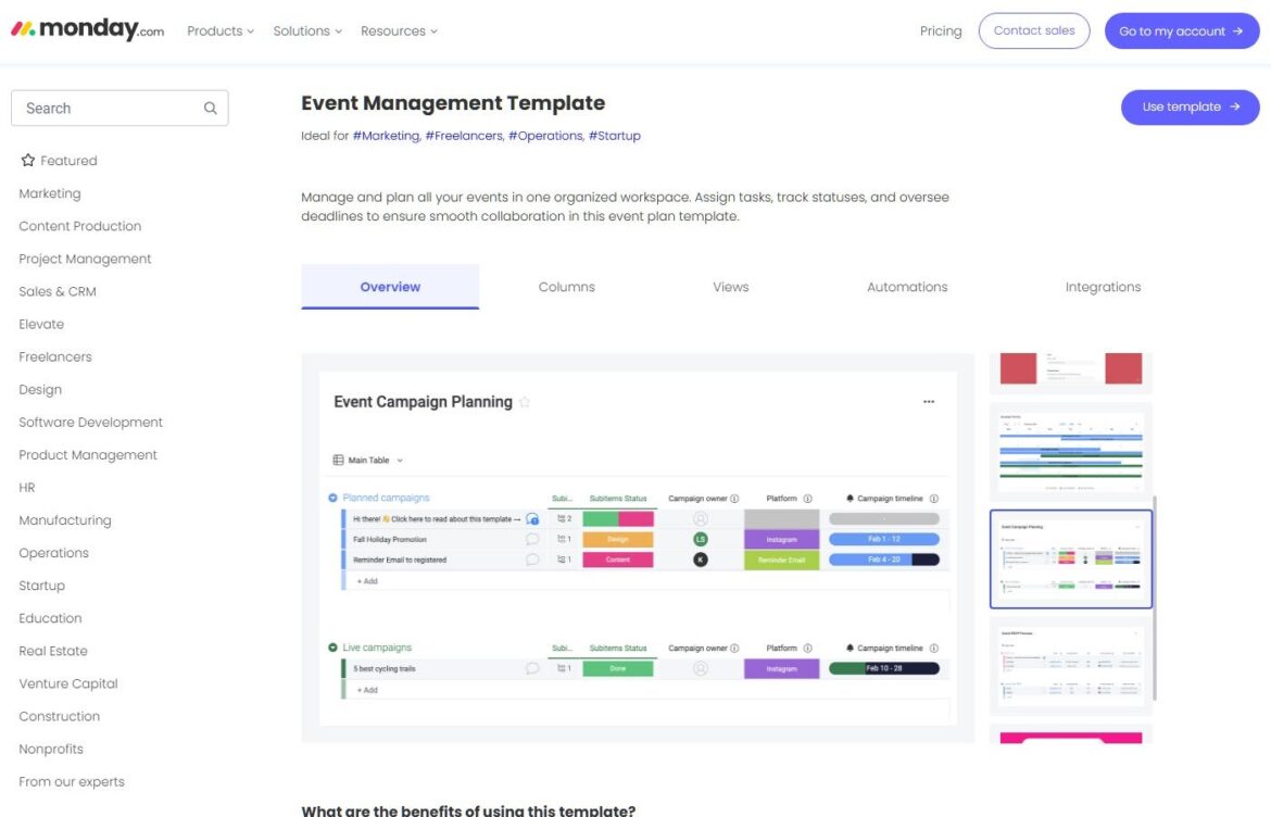 Planning an event is a lot like managing a project, especially if you’re juggling multiple events alongside other projects and a team at the same time. Since monday.com is one of the best project management solutions on the market today, it’s perfect for managing all three within the same platform.
